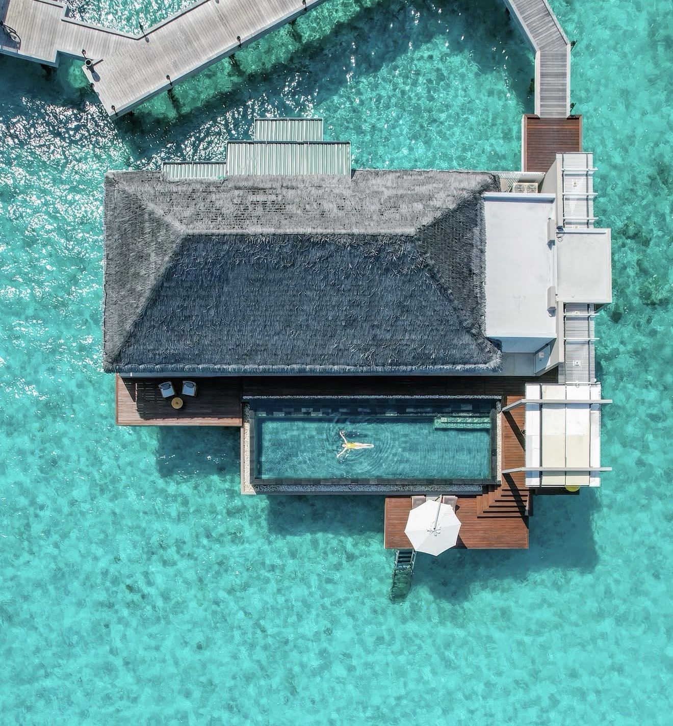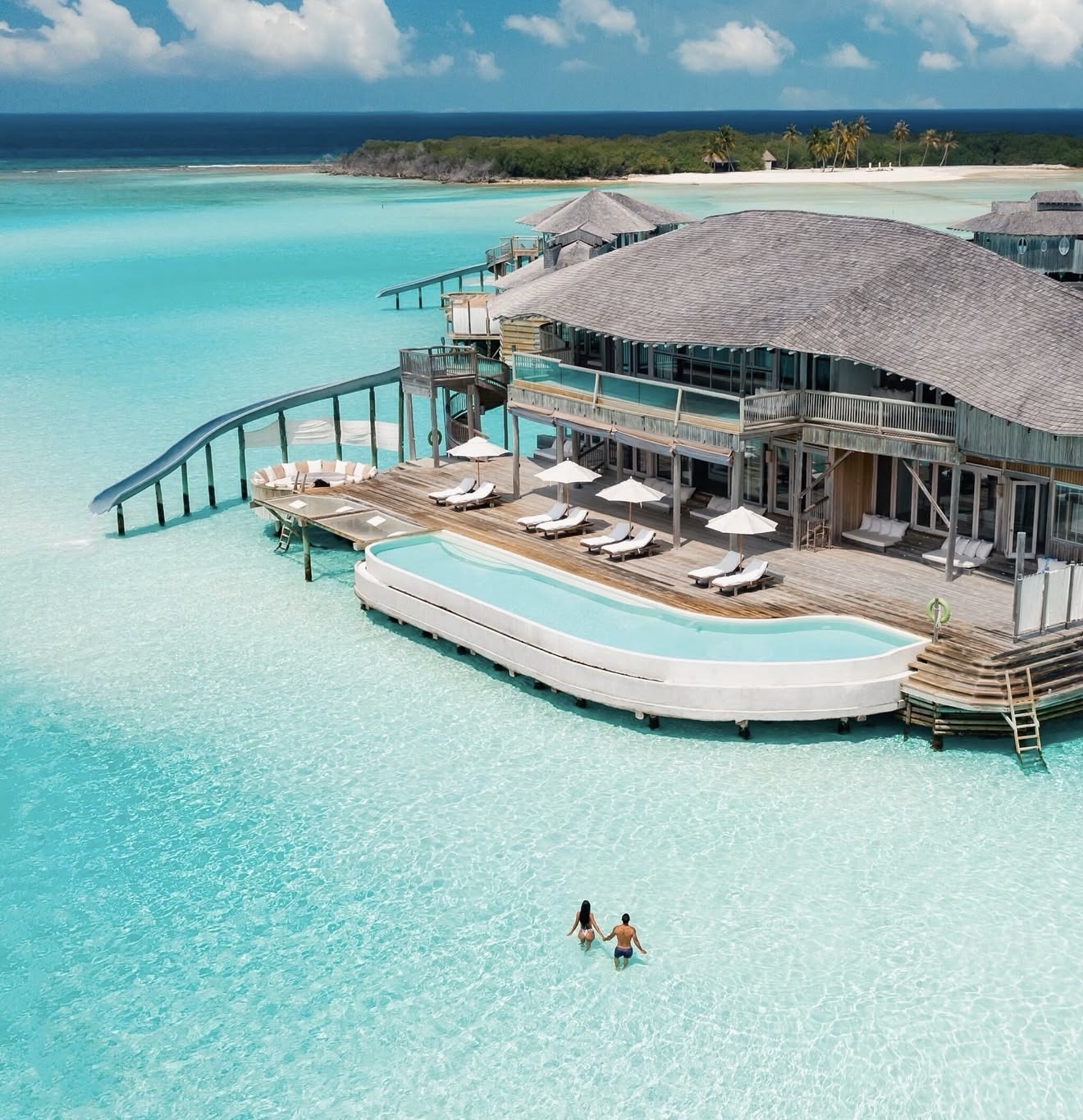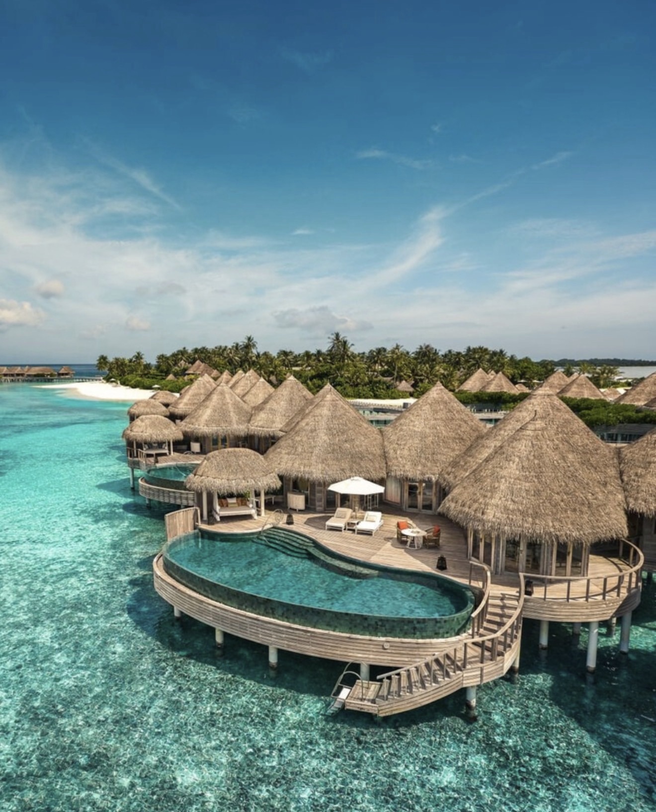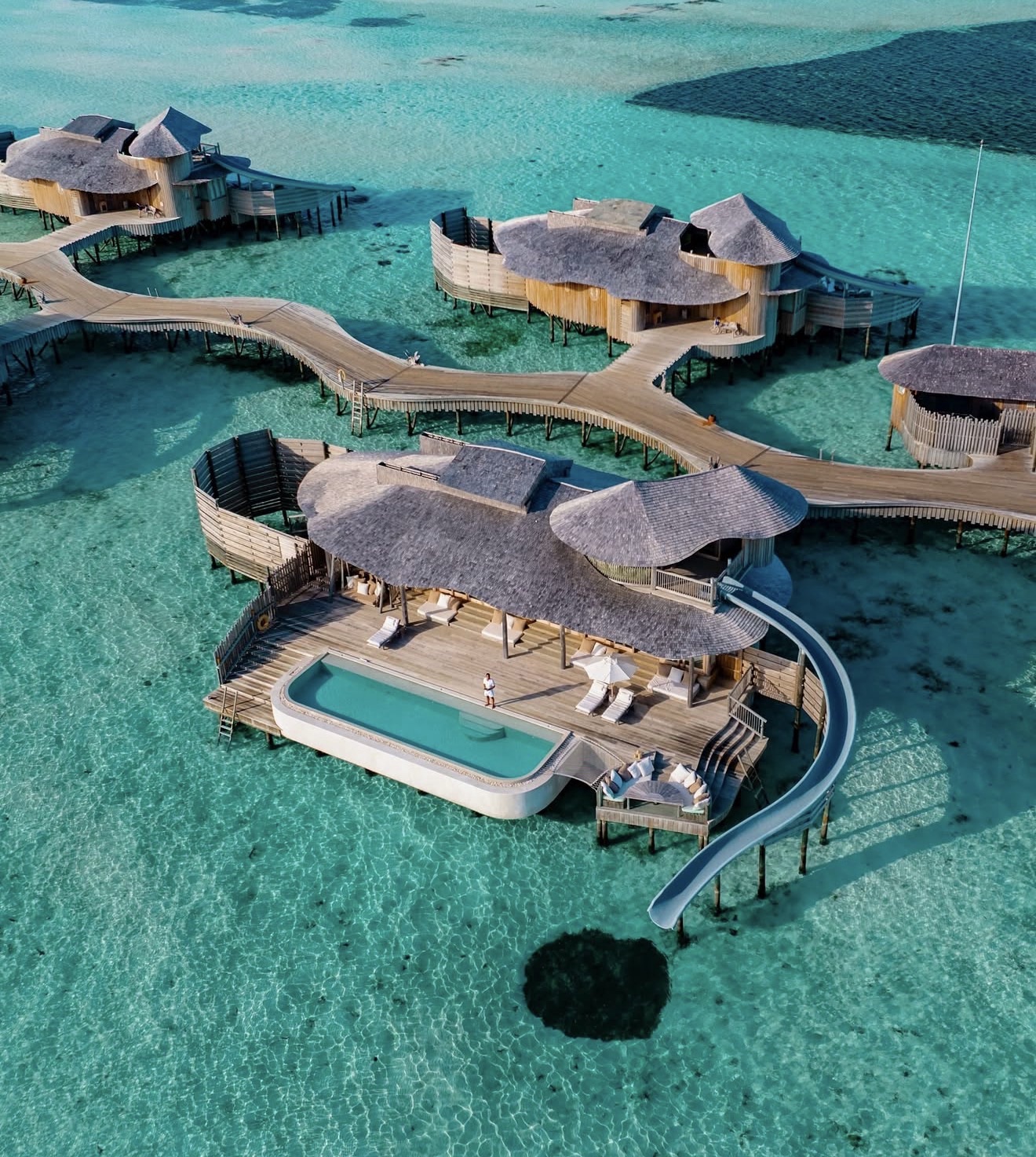 Soneva Jani feels like entering another dimension: the design is surreal (in the best way), set in one of the most beautiful lagoons in the Maldives. The vibe is more relaxed, barefoot luxury but still incredibly high-end. Villas are the best in the Maldives (around 555 sqm), with slides into the lagoon and retractable roofs to sleep under the stars. Very nature-driven and peaceful. Service is warm and discreet, and the experiences (cinema, dining, snorkelling) make it truly special; many included in your stay.