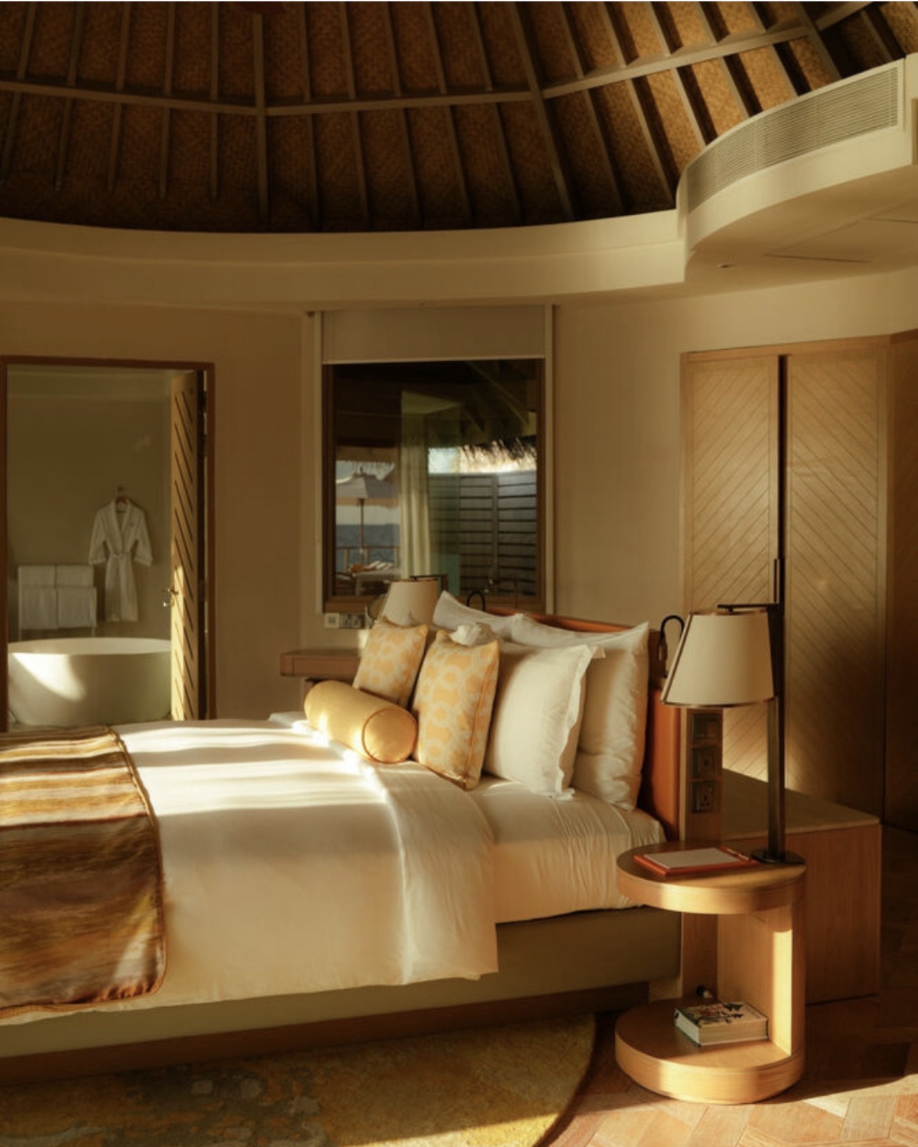 The Ritz-Carlton Maldives, Fari Islands is Maldives luxury but with a very architectural, design-led twist. The villas are smaller than the other hotels on this list, starting at around 150 sqm but going up to bigger residences. There are 7 restaurants and bars, spread across different islands and a marina village, so it actually feels lively (which is rare in the Maldives). What makes it stand out is the whole setup: it’s built across three islands, with that iconic circular villa design by Kerry Hill; you’re not stuck on one island and you move around and it makes the holiday more dynamic.